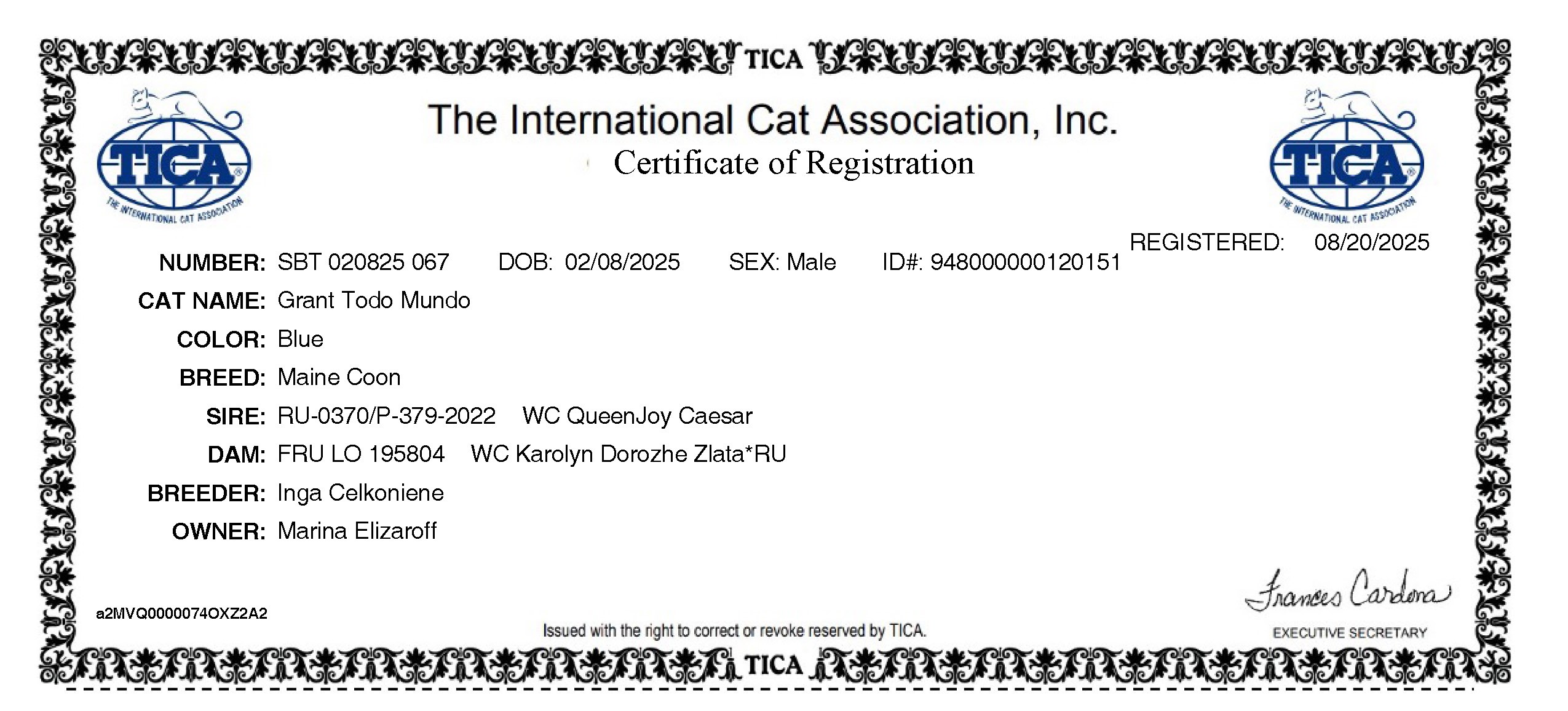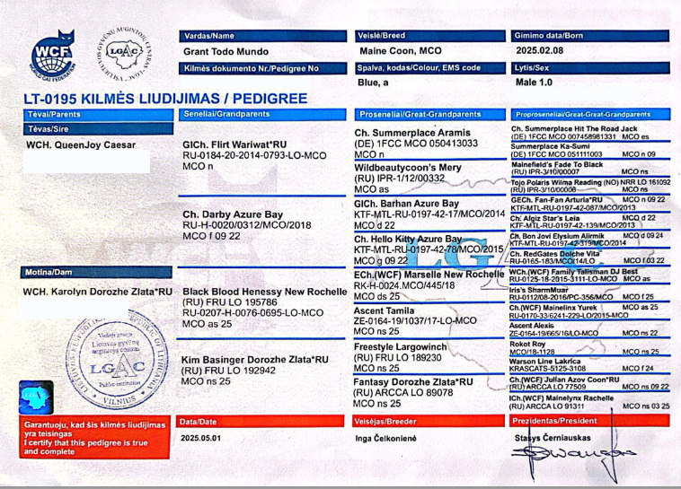 Representing the pride of the American nation and the cream of domestic cats, the Maine Coon has remained the way nature created him – he breathes with the unspent healthy freshness of wild life. No one has even tried to change this amazing balance of proportions and forms, which has been causing only admiration for one and a half hundred years… And if there is a cat in the form of a person, then it is the Maine Coon.