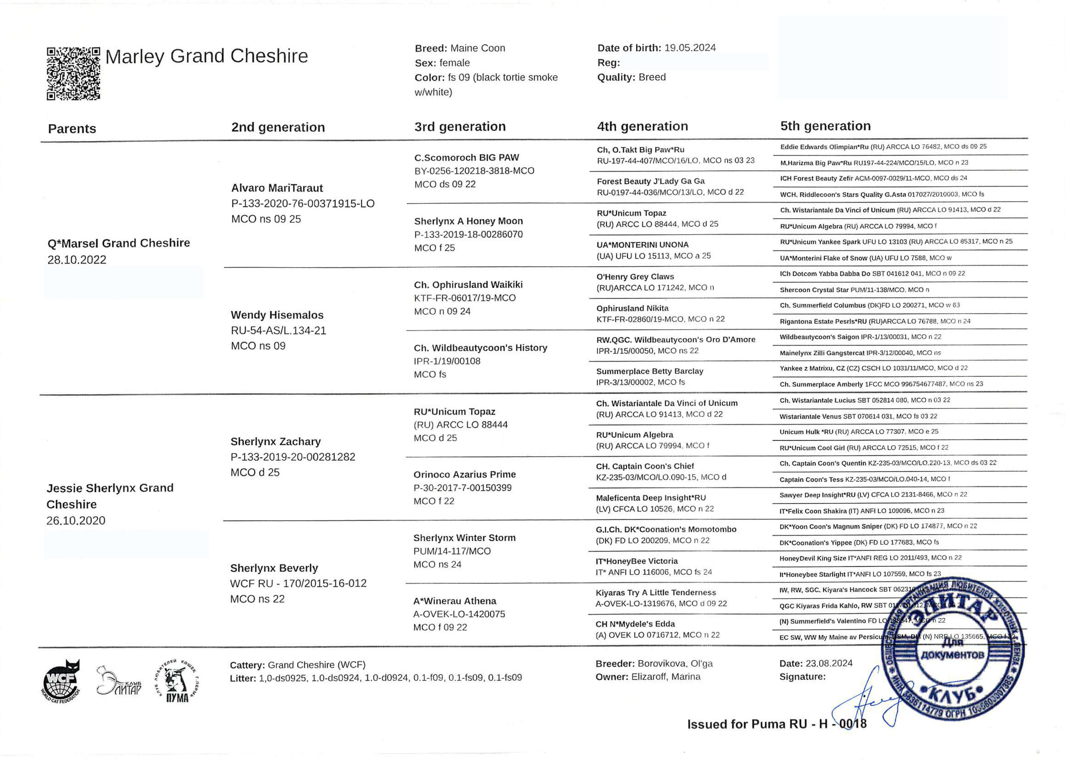 Representing the pride of the American nation and the cream of domestic cats, the Maine Coon has remained the way nature created him – he breathes with the unspent healthy freshness of wild life. No one has even tried to change this amazing balance of proportions and forms, which has been causing only admiration for one and a half hundred years… And if there is a cat in the form of a person, then it is the Maine Coon.