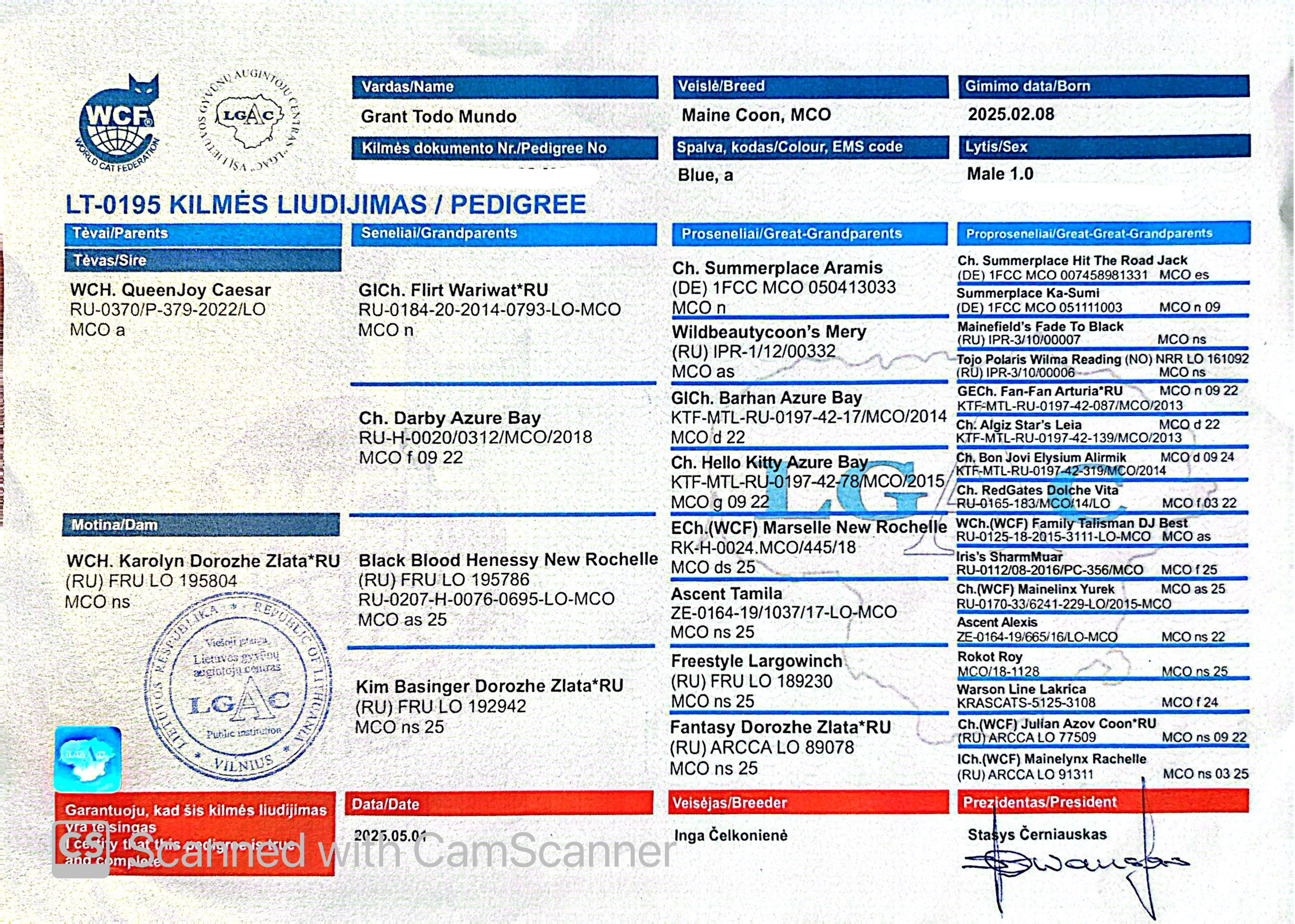 Representing the pride of the American nation and the cream of domestic cats, the Maine Coon has remained the way nature created him – he breathes with the unspent healthy freshness of wild life. No one has even tried to change this amazing balance of proportions and forms, which has been causing only admiration for one and a half hundred years… And if there is a cat in the form of a person, then it is the Maine Coon.