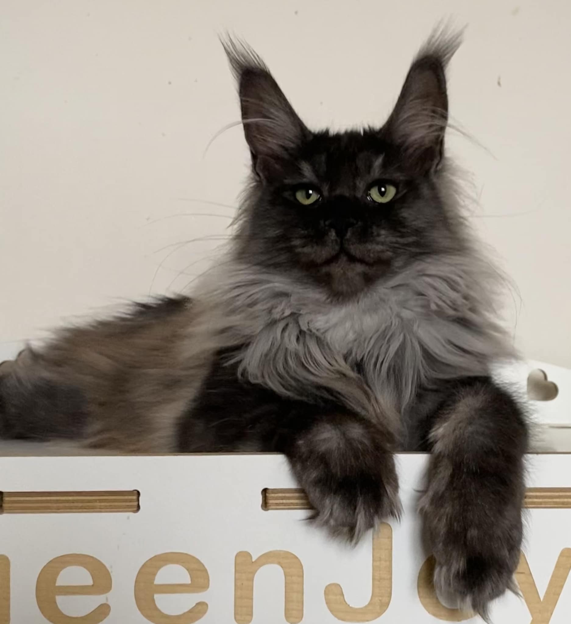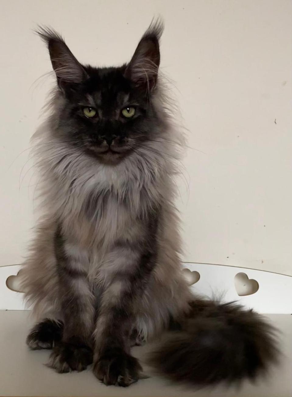 Nefertiti is our delicate exotic flower. A fluffy beauty with amazingly expressive eyes, huge tassels on her ears and a magnificent "peacock" tail.