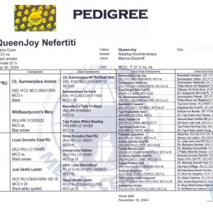 Very kind and affectionate, Nefertiti is also distinguished by her high intelligence, excellent learning ability and the need to communicate with people. A gentle, calm and friendly cat, she loves attention and gets along well with children and other fluffy creatures. She is the daughter of Grand Inter Champion Flirt Wariwat (WCF)