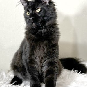 Sweet, kind, gentle, unobtrusive. Very beautiful black color on a smoky base. Fluffy.